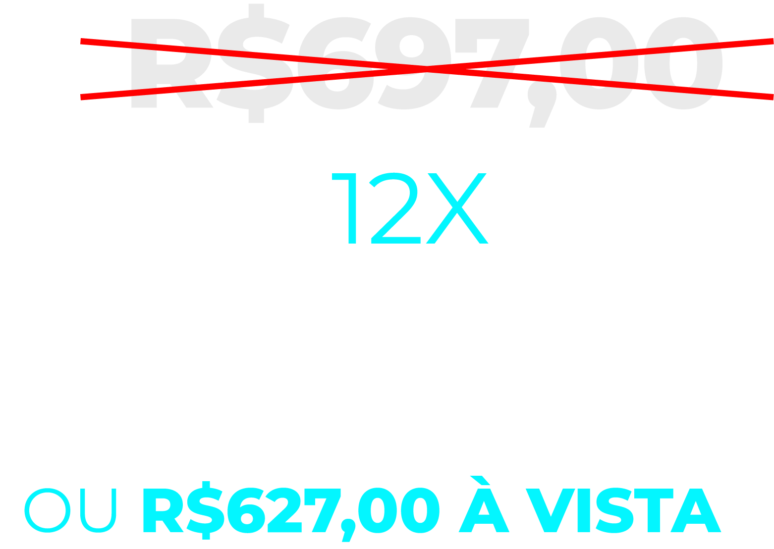 O preço real desse curso e tudo o que ele oferece hoje é de R$ 697,00, mas nós estamos trabalhando nessa turma com um desconto de primeiros alunos. É importante você saber que, para a próxima turma, o preço deve chegar mais perto do valor final.
